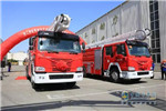 2017年5月12日,徐工消防廠區廣場上10臺徐工JP25B2舉高噴射消防車佩戴大紅花, 整裝待發,在全體員工的...