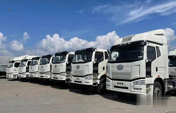 近日,菲律賓蘇比克港,一汽進出口公司出口的40臺解放J6P重卡整齊排列,成為一道靚麗風景。