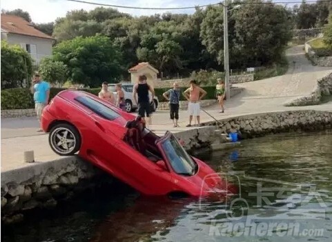 一輛貨車剎車失靈,把法拉利360 Spider跑車撞到海里。該法拉利當(dāng)時(shí)停在海港的邊緣,司機(jī)在10米遠(yuǎn)的餐廳吃飯,他眼睜睜地目睹自己的愛(ài)車被那輛白色雷諾Master卡車撞到水里,無(wú)能為力。這場(chǎng)事故發(fā)生在地中海的克羅地亞島。