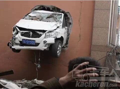 在重慶的一個(gè)二層停車場(chǎng),司機(jī)錯(cuò)把油門當(dāng)剎車,使得車穿過(guò)了墻壁。住在停車場(chǎng)隔壁的黃小平先生說(shuō):“我聽(tīng)到兩聲爆炸聲,跑出來(lái)看到車卡在墻上,前輪還在不停地空轉(zhuǎn),我以為是拍電影呢。”后來(lái)有一男一女從車?yán)锱莱鰜?lái),兩人都沒(méi)有受傷。