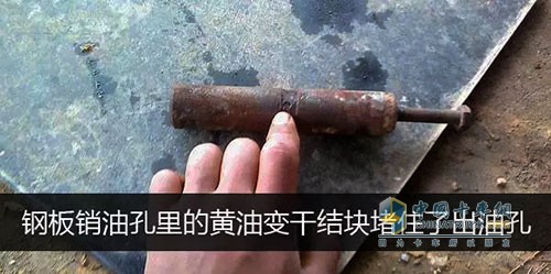 這個方法也是卡友在無意之間發現的,有一個車主的車經常在他那里打黃油,有一個鋼板銷就死活都打不進去黃油,有一天這個車主的車鋼板斷了,正好斷鋼板是打不進黃油那邊。