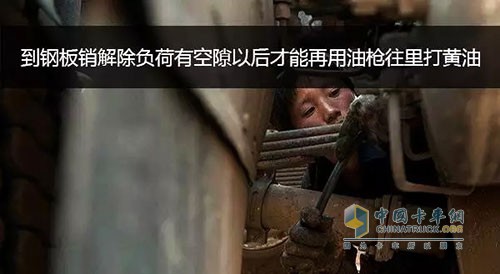 解決這兩種打不進黃油的毛病,都需要用千斤頂將車頂起,直到鋼板銷解除負荷有空隙以后,再用油槍試著往里打黃油。