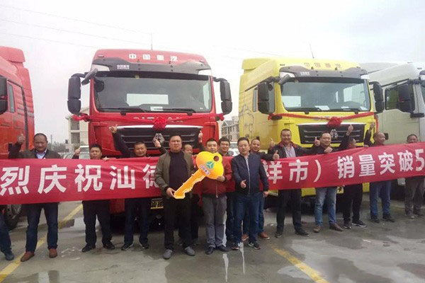 2019年4月9日,湖北省鐘祥市十堰遠順工貿有限公司又交付了5臺汕德卡牽引車,現場交付儀式中物流公司老板當場又簽下15臺汕德卡訂單,區區一個小縣城成交了50臺汕德卡!