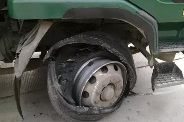 卡車的實際載重量超過車輪的最大允許載荷時,輪胎的內壓就會增大,當輪胎的內壓超過輪胎氣門的密封壓力時,就會引起輪胎漏氣,如果承載力大的后雙輪中有一個輪胎漏氣而駕駛員未能及時發現,就會導致后雙輪中的另一輪胎負荷過大而爆胎。