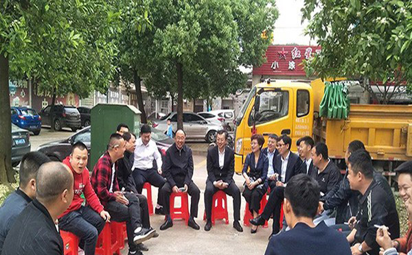 參會領(lǐng)導(dǎo)和代表們進入紅嶺花園與客戶溝通
