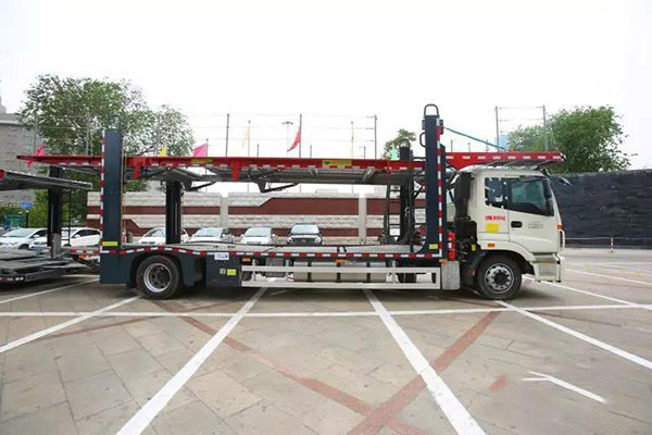 近年來,隨著鐵水運輸份額的不斷上升,公路運輸進一步聚焦在長距離效率保障和短駁業務上,這寫對公路運輸裝備提供了更高的要求。福田戴姆勒汽車基于企業運輸需求打造的歐曼新ETX中置軸轎運車提供安全、可靠、節油、舒適的公路運輸裝備。在裝載能力上,新歐曼ETX中置軸轎運車平臺、踏板等全部采用液壓系統控制升降,下平臺機械自動化結構,幾乎無需使用人力搬動,可實現雙層插裝,保證裝載8-9臺不同車型轎車,相比長頭轎運車每次多裝2臺車。