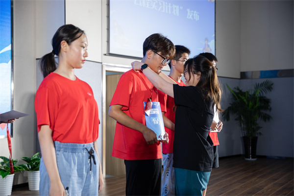 除了為考生家庭提供獎學金以外,滿幫集團還為所有獲獎考生準備了入學前的“能量禮包”,并在活動現場正式推出“云程實習計劃”,對本次獲獎學生開通未來實習的綠色通道。滿幫集團聯合創始人馬桂珍向到場的考生發出了第一批“綠色通行證”和滿幫實習工牌。