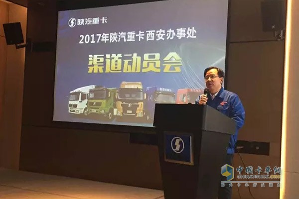 陜重汽銷售公司總經理劉翔韜發布了2017陜西地區營銷動員令,大家策劃好2017年工作,深入研究細分市場、研究客戶需求,把握細分市場的增量空間,抓大客戶,研究大客戶的運營模式、采購模式,廠家聯合做終端,做好德龍X3000黃金版推廣,實現陜西區域一季度開門紅。銷售公司副總經理鄭宇龍對區域內優秀經銷商和服務站頒發了優秀經理人和服務之星獎項,對渠道合作伙伴進行了激勵。