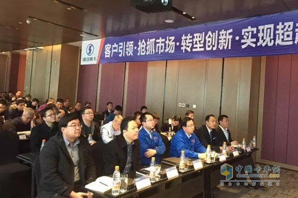陜西區域總經理王建勛就2016年區域市場情況進行了總結,對2017年的區域營銷策略進行了部署。2016年,陜西區域全年銷售2998輛,提前完成2800輛全年任務,在港口牽引車、危化品、城市渣土車等細分市場均有突出表現,渠道轉型效果明顯,同時總結了2016年工作中的不足,同時激勵渠道2017年再接再厲努力完成營銷目標。