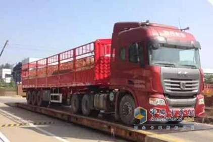 中集東岳2017 M型新款輕量化高強度鋼倉柵式運輸半掛車,整備質量為5.25T。