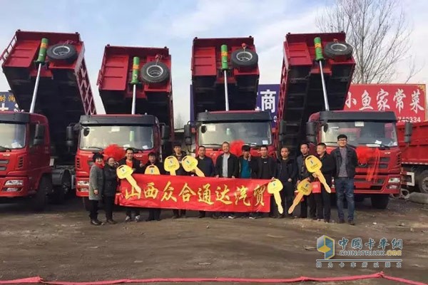 陜汽商用車渠道動員會在各地如火如荼。2017年1月10日,軒德輕量化王者自卸在山西太原交付5輛,交車現場,再簽訂單20輛,活動現場喜訊不斷。