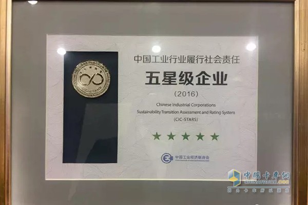 江淮汽車榮獲“中國工業行業履行社會責任五星級企業”