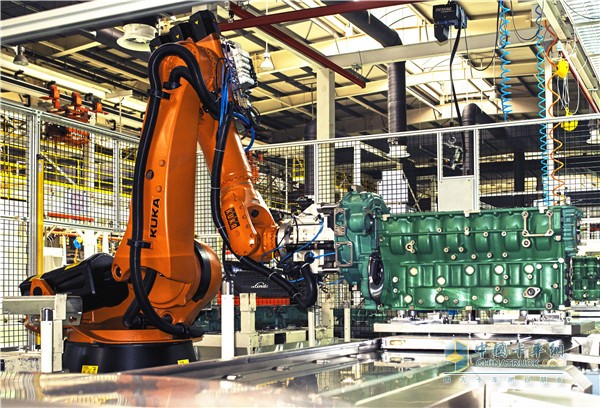 “這里的6DM氣缸體生產線是GROB的全球第一條重型柴油機氣缸體生產線。”基地領導自豪地說,裝備領先是確保奧威6DM機高品質的重要因素,這里的整線設備如加工、裝配、輸送、檢測、校車等均由國際領先的設備供應商提供。其中,6DM11升發動機裝配線采用NC控制,借助機器人、助力機械手、桁架機械手及EMS系統等實現自動化運行,同時整線設計采用了視覺防錯、激光防錯、機械防錯等多種先進防錯技術,實現了6DM11升柴油機的高效生產和產品高品質。
