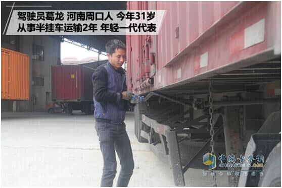 駕駛員葛龍,河南周口人,今年31歲,從事牽引半掛車運輸2年,是年輕一代駕駛員代表。