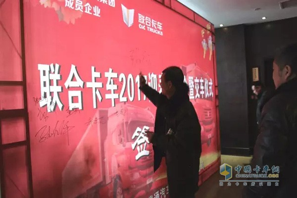 2017年2月4,來(lái)自襄陽(yáng)、棗陽(yáng)、安陸等地的聯(lián)合卡車客戶60余人共同參與聯(lián)合卡車棗陽(yáng)新春產(chǎn)品推介會(huì),當(dāng)日現(xiàn)場(chǎng)簽訂訂單37臺(tái),并達(dá)成61臺(tái)意向訂單。