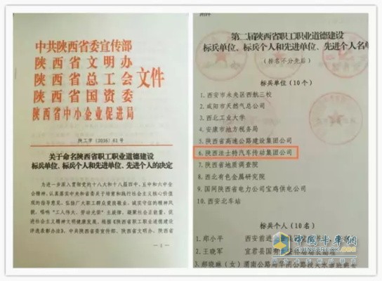 日前,中共陜西省委宣傳部、陜西省文明辦、陜西省總工會、陜西省國資委、陜西省中小企業促進局等五部門共同組織開展了第二屆全省職工職業道德建設評選活動,并對獲獎單位和個人進行表彰。法士特集團憑借職工職業道德建設取得的優異成果,喜獲“第二屆陜西省職工職業道德建設”標兵單位榮譽稱號。