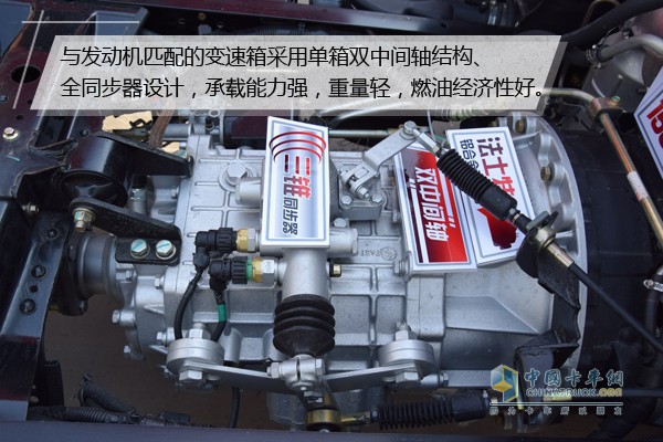 除此之在底盤配置上,與之匹配的是法士特六檔變速箱,型號為6DS40T。該變速箱采用單箱雙中間軸結構、全同步器、全鋁合金殼體設計,承載能力強,重量輕,燃油經濟性好,可有效提高使用壽命,可靠性更高。此外其發動機缸蓋、齒輪室蓋、油底殼均、變速箱采用高強度鋁合金材質,輕量化設計為整車減重不少,不僅省油還能多拉貨。