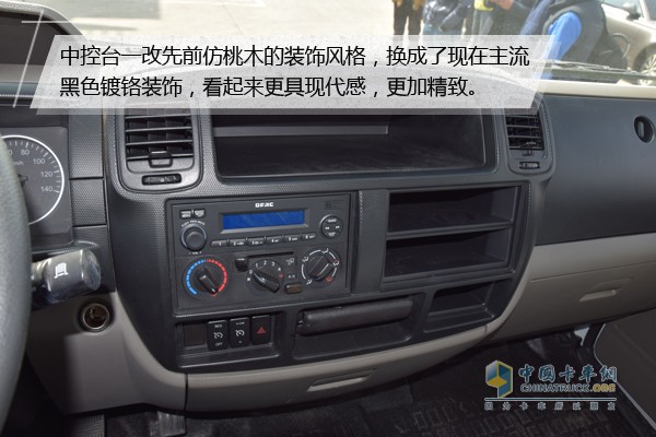 K6的內飾相比之前車型有了不小的變化,我們首先注意到的就是其中控臺,中控臺一改先前仿桃木的裝飾風格,換成了現在主流的黑色鍍鉻裝飾,看起來更具現代感,更加精致,與城市專業物流相得益彰。儀表盤的數字顯示屏從左側移動到了中間,而且作為國五車型,除了常規水溫、油量表外,還增加了SCR表,用來顯示尿素剩余量。