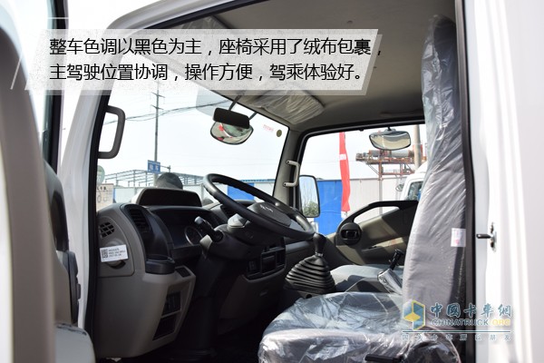 整車色調以黑色為主,座椅采用了絨布包裹,主駕駛位置協調,中控臺稍微偏左,司機操作方便,駕乘體驗十分好。