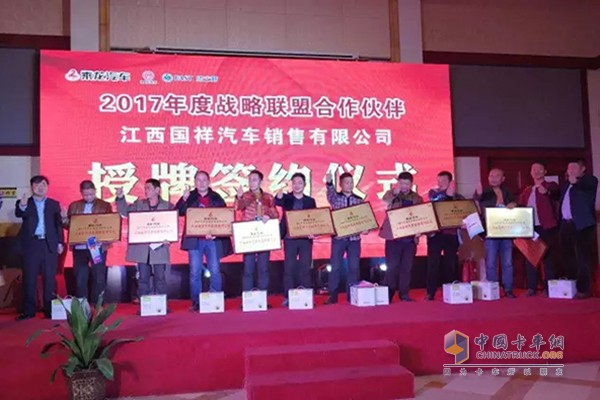 本次活動不僅僅乘龍車的訂單收獲頗豐,還有不少戰略合作伙伴獲得了乘龍汽車的銷售許可證書。