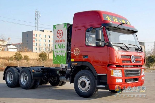 大運很值得推薦的LNG產品就是他的大運N8系列牽引車,N8系列牽引車有6×2和6×4兩種,馬力可達到350馬力,采用WP10發動機,搭配法士特12當變速箱,氣罐容積達到900升。