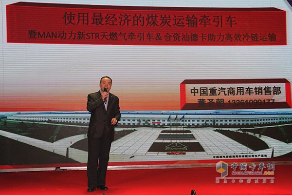 中國重汽商用車銷售部魯北汕德卡項目組經理董圣朝對產品進行介紹
