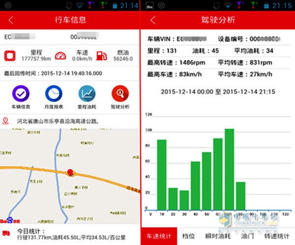 中國重汽車輛配備的“智能通車隊管理系統”包含位置控制、狀態管理、駕駛分析、加油管理、遠程診斷等系統功能,極大的節約了車隊在日常車輛管理中的工作量,也為物流公司運營方案的優化提供了數據基礎。