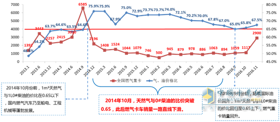 天然氣與柴油價(jià)格比直接影響燃?xì)饪ㄜ囦N量