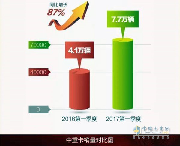 在剛剛過去的一季度,解放中重卡銷量累計7.7萬輛,相比2016年一季度的4.1萬輛,同比增長87%,市場份額達到23.6%,同比增長2.5%,較2016全年增長4.3%,一季度取得開門紅。同時這也是一汽解放自2016年1月開始“霸占”國內中重卡銷量桂冠的第15個月,解放領航已經成為市場常態。