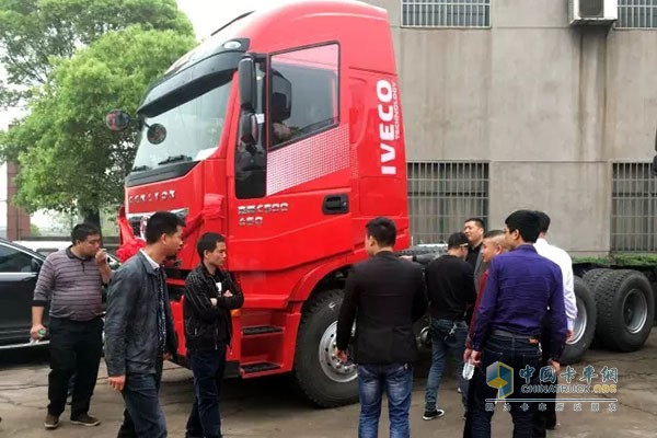 紅巖杰獅C500牽引車引用戶圍觀