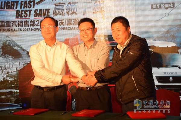2017年4月25日,由中國(guó)重汽銷售部舉辦的“多快好省、贏領(lǐng)干線”——豪沃/豪瀚曼平臺(tái)產(chǎn)品品鑒會(huì)在青島召開。當(dāng)日現(xiàn)場(chǎng)有用戶購置新車的激動(dòng),也有用戶抽取豪禮的喜悅,天公作美,在熱鬧的氣氛中更是下更有小雨助興。一幕幕畫面熱鬧、歡快,但也有一場(chǎng)簽約儀式十分隆重,所以這里我們要拿出來單獨(dú)說說,那就是青島港國(guó)際貨運(yùn)物流有限公司與中國(guó)重汽銷售部簽訂的戰(zhàn)略框架合作協(xié)議。全新合作模式、巨大市場(chǎng)潛力,尤其是在青島港這個(gè)極具發(fā)展?jié)摿Φ牡胤剑@個(gè)合作對(duì)于中國(guó)重汽有著非凡的意義。
