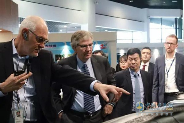 福田戴姆勒研發副總裁何馬騰為Martin Daum一行講解產品