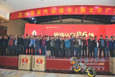 2017年4月10日,“贏勢17 鉅惠來襲,汕德卡/斯太爾感恩回饋季”活動在濟寧拉開序幕,中國重汽濟南商用車銷售部攜手濟寧德潤隆汽車銷售公司召開汕德卡/斯太爾廠家直銷會,當(dāng)場斬獲86臺訂單。