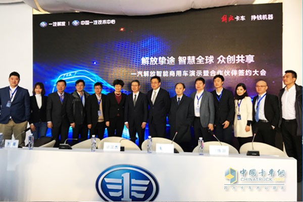 在活動現場,一汽解放與百度、恒潤、愛立信、中國移動、博世、大陸、ZF、沃特瑪集團分別簽訂了戰略合作協議,將在智能商用車開發、核心技術研究、市場推廣運營等方面開展廣泛合作。這一有力動作,證明一汽解放構筑智能駕駛商用車研發、生產、運營的全產業鏈生態圈的決心,表明了一汽解放將借助產品技術優勢在智能商用車領域持續發力,率先駛入商用車智能駕駛發展快車道的明確態度。