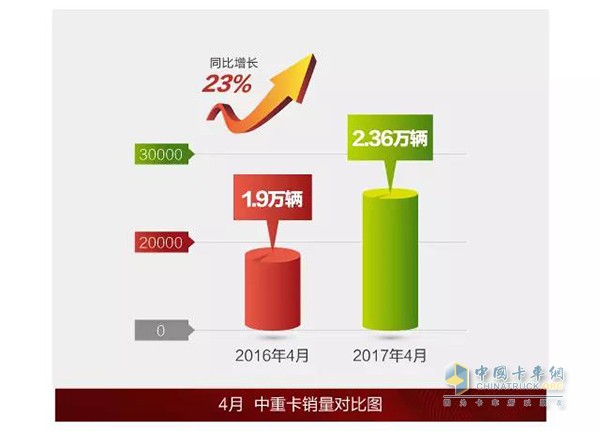 據(jù)最新數(shù)據(jù)顯示,2017年4月份,解放中重卡銷量2.36萬輛,同比增長23%!其中,解放牽引車銷售1.5萬輛,同比增長44%。解放自卸車銷售0.22萬輛,同比增長101%!