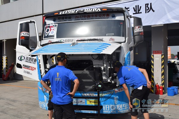 據記者了解,此次鉑駿產業隊抽調的技術服務團隊都是精兵強將,不論是人數還是技術,在所有參賽車隊中都排名前列。從統一的著裝就可以看得出,這是一支訓練有素的隊伍。在賽車改裝上,鉑駿賽車采用了濰柴WP13發動機中置,加強了過彎動力,包括前橋等硬件配置,都做了技術調試,確保賽車保持最佳狀態。