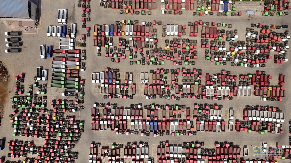 數(shù)百輛重卡放在一起場面十分壯觀