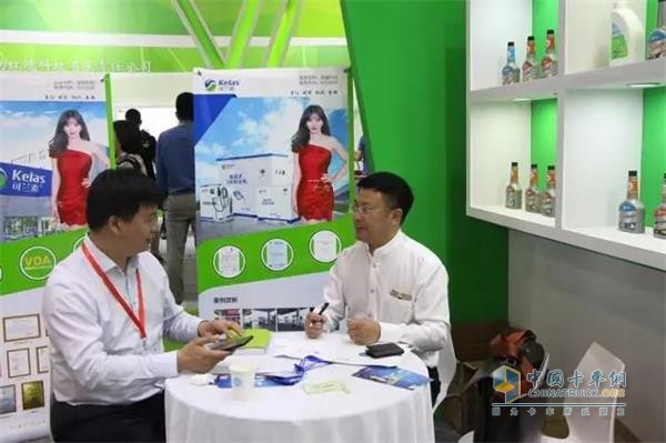 此次展會現場,可蘭素展出了最新款的“省暢”車用尿素等多款產品,幫助司機“省錢更省心,暢通更暢行”,此外,還展出了加注設備、國五養護品等系列汽車環保產品。