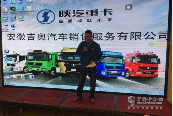 會前播放康明斯的產品宣傳視頻引起會場參會人員的強烈反響,安徽吉奧銷售經理馬錦代表陜汽重卡對本次活動做了簡單的致辭發言。