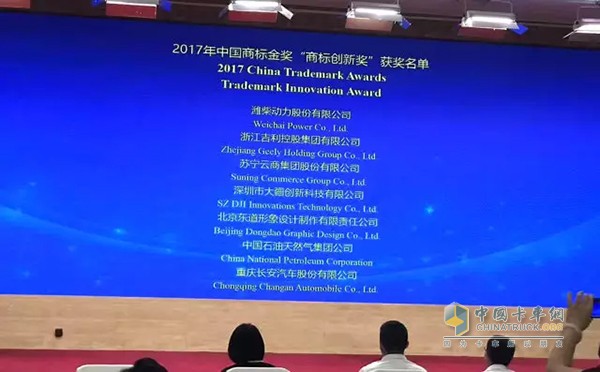 2017年6月30日,2017年“中國商標金獎”頒獎大會在江蘇揚州召開。濰柴動力從眾多知名企業中脫穎而出,榮獲“中國商標金獎·商標創新獎”,并在7家“商標創新獎”獲獎單位中名列第一位,是目前山東省唯一獲該獎項的裝備制造類企業,也是國內內燃機行業第一家獲獎企業。