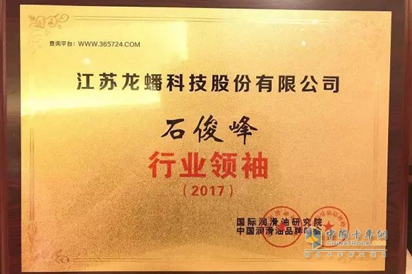 2017年7月17-18日,由南京潤道主辦的“2017中國潤滑油品牌峰會”在江蘇無錫隆重召開,300多家潤滑油企業,400余位精英齊聚一堂,暢談市場、探討未來。在18日晚舉行的頒獎環節中,龍蟠潤滑油榮獲組委會頒發的“十大民族品牌”稱號,龍蟠科技董事長石俊峰榮獲“2017行業領袖”稱號。