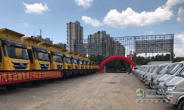 2017年7月30日,上汽依維柯紅巖商用車有限公司(以下簡稱“上汽紅巖”)的一批杰獅C500西南版自卸車,在云南普洱交付某大型建材物流用戶,上汽紅巖經銷商代表和用戶代表等60余人參加了交車儀式。