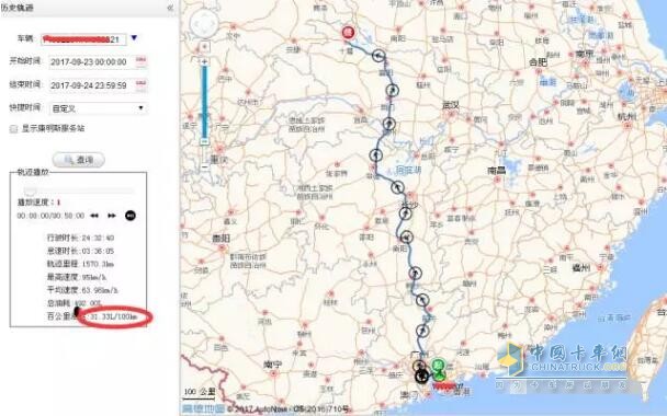 從西安到廣州 百公里油耗:33L