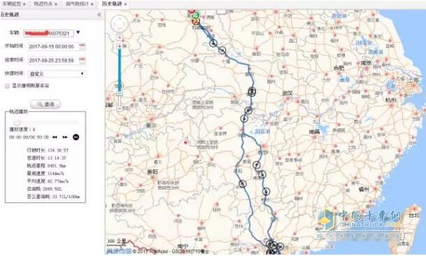 陳老板主要運輸路線為西安---廣州,路況高速,每五天跑一個來回。