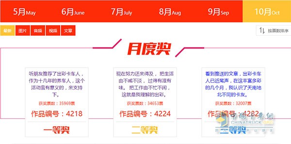 “出彩卡車人”十月票數前三名
