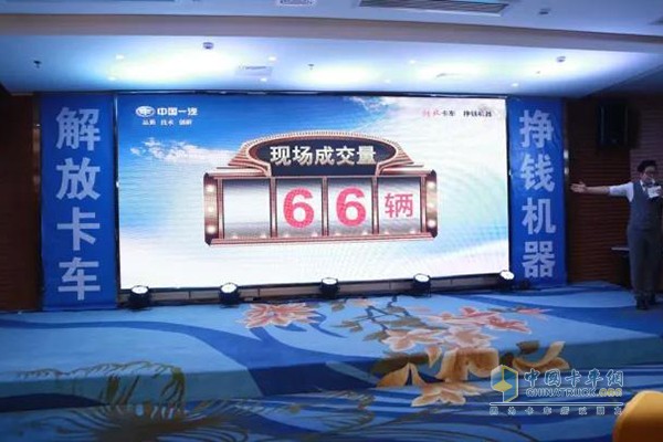 會上,解放山區版重載自卸憑借著獨有的產品特性,收獲了卡友和經銷商合作伙伴們的一致認可,現場共計成交了66臺。相信此款細分車型,一定能夠為廣西卡友帶去更多財富與機遇,為一汽解放產品銷量助力加油!