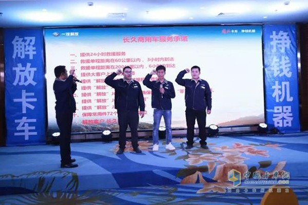現場,來自長久解放的全體服務人員做出了鄭重的服務承諾,將徹底貫徹卡友至上的服務理念,以最大的熱忱和最飽滿的熱情為卡友提供最滿意的服務,讓大家感受到一汽解放的實力與信念。