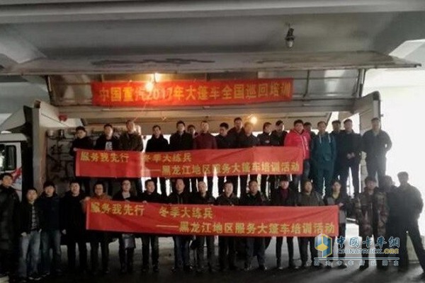 北國歲末,寒冬初臨。2017年11月21日,中國重汽銷售部服務培訓大篷車再次來到祖國的最北端——黑龍江省。初冬季節,雖不至千里冰封,但是已然飄散小雪,服務大篷車從濟南出發,歷時兩天趕到哈爾濱,開始進行為期三天的售后服務培訓活動,黑龍江地區40余名服務人員參加培訓。