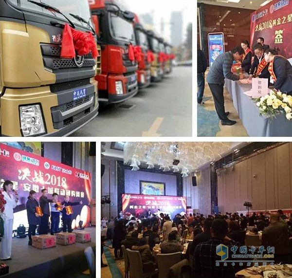 2017年12月03日,以“決戰2018”為主題的“黃金之星”安徽十城聯動團購風暴第四站在素有“汴水東流無限春”的宿州拉開盛大帷幕。“黃金產業鏈”核心成員濰柴動力、法士特等駐皖銷售代表齊聚一堂,與宿州中遠陜汽4S銷服團隊,以及宿州各區縣核心二級網絡、大客戶代表、競品客戶等共210余人共同見證了本站精彩時刻。
