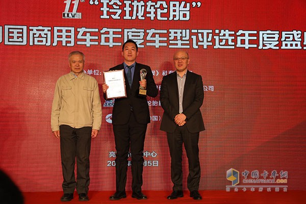 福田汽車集團(tuán)高級(jí)副總裁、福田戴姆勒汽車品牌總監(jiān)李健先生領(lǐng)取年度創(chuàng)新車型大獎(jiǎng)